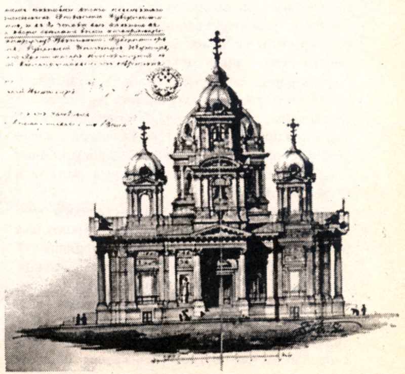 Проект Троїцької церкви 1901 р. в Сумах. Архівна світлина. Публікується вперше Розмір зображення: 800:738 піксел Попередня сторінка | Вище | Наступна сторінка