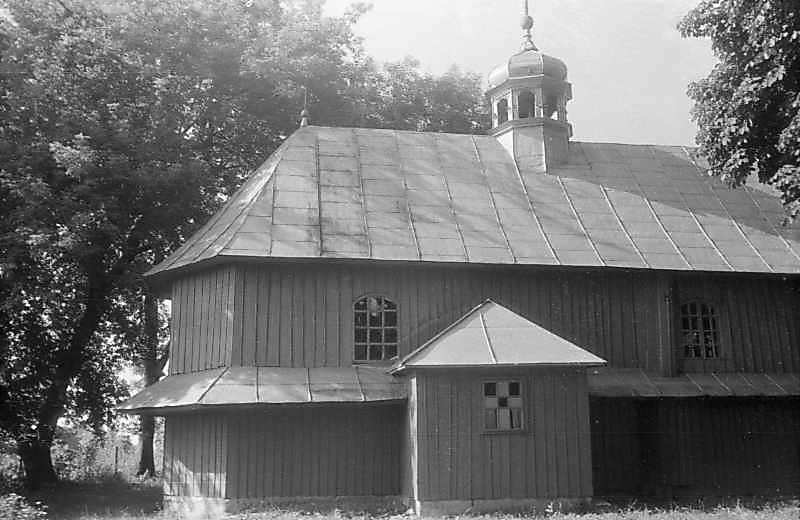 Існуюча дерев’яна тризрубна церква поставлена у 1780 р. (за іншими даними у 1722 p.). Рівновисокі її зруби вкриті повним дахом з ліхтарем і маківкою над навою. По другій світовій війні стояла зачиненою у 1960 – 1989 pp.