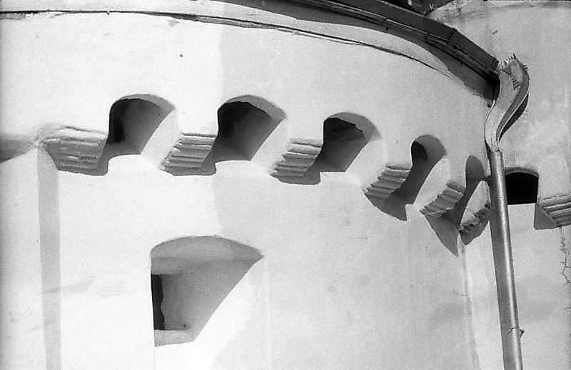 Верхній ярус західної конхи з бійницеюРозмір зображення: 800:519 піксел 1995 р. 25 липня. Фото М.І.Жарких. Негатека, № 860-38. |