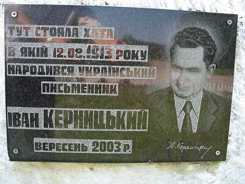 Напис: «Тут стояла хата, в якій 12.08.1913 року народився український письменник Іван Керницький. Весересь 2003 р.»