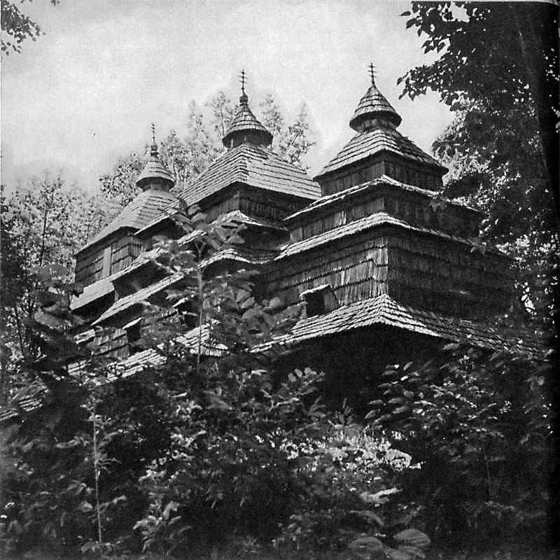 [1970 р.] Загальний вигляд з позиції А2Розмір зображення: 800:800 піксел Джерело: Гоберман Д. Н. Памятники деревянного зодчества Закарпатья. – Ленинград: Аврора, 1970 г. |