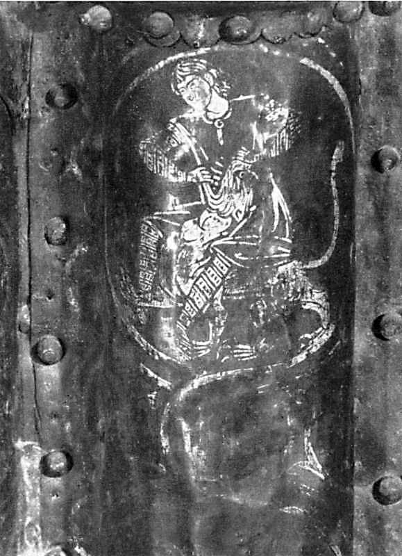Самсон роздирає пащеку леваРозмір зображення: 579:800 піксел Южные двери Рождественского собора в Суздале. Джерело: Рыбаков Б.А. Русское прикладное искусство 10 – 13 вв. – Лг.: 1971 г., с. 56. |