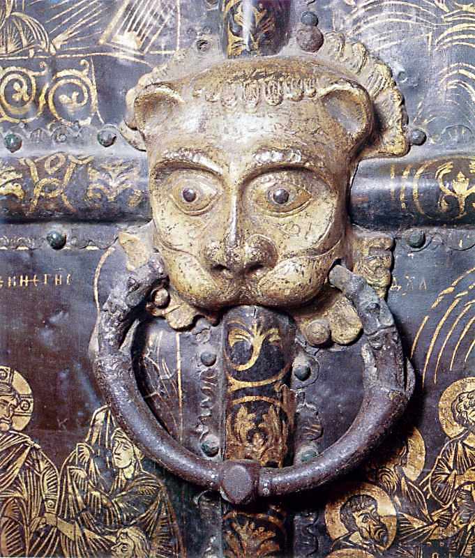 Львиная маска на западных дверях Рождественского собора в Суздале.