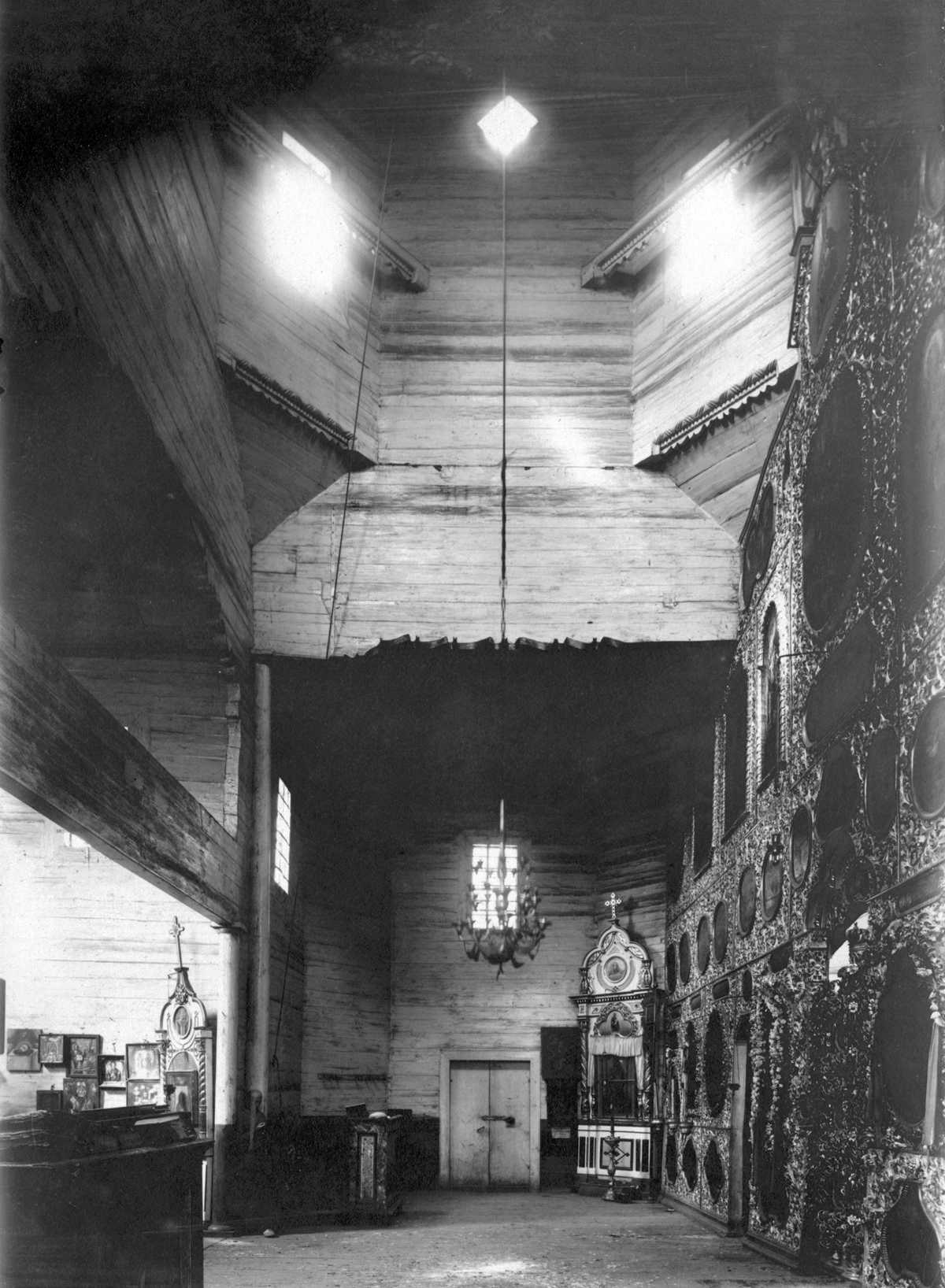 1920-і (?) рр. Інтер’єр середохрестя і бічного раменаРозмір зображення: 1200:1636 піксел Фото Стефана Таранушенка і Павла Жолтовського з експедиції Харківського музею українського мистецтва. 1920-і рр. (?) Опубліковано 13.08.2020 р. |