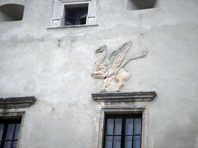 2006 р. Фрагмент фасаду півленної башти з рельєфом звіра Розмір зображення: 800:600 піксел Вкладені елементи Рельєф фантастичного звіра