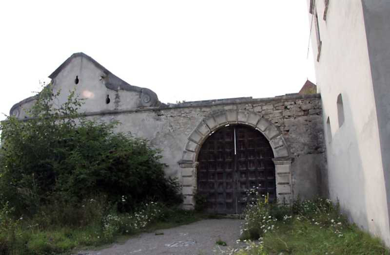 2009 р. Брама південно-західного двораРозмір зображення: 800:524 піксел Вигляд з південного сходу. Фото Зенона Боровця і Богдана Тхора, 11 серпня 2009 р. |