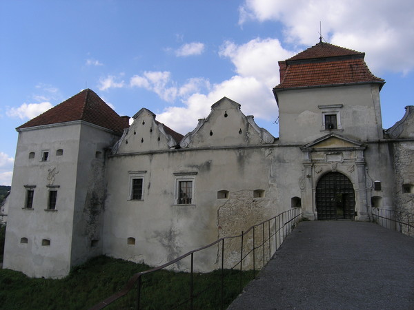Фрагмент чільного фасаду з брамою Розмір зображення: 600:450 піксел Вкладені елементи Грифон біля брами