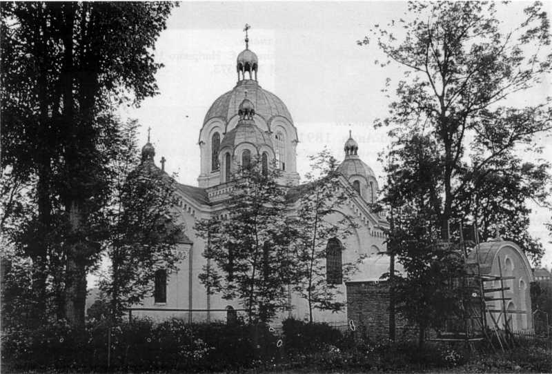 1992 р. Загальний вигляд з північного сходуРозмір зображення: 800:542 піксел Світлина І. Синкальського 1992 р. Джерело: Слободян В. Церкви України: Перемиська єпархія. – Льв.: 1998 р., с. 50. |