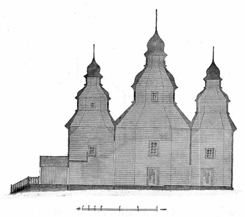 Рис. 76. Разрез Воскресенской церкви в с. Синявы Розмір зображення: 800:708 піксел Попередня сторінка | Вище | Наступна сторінка