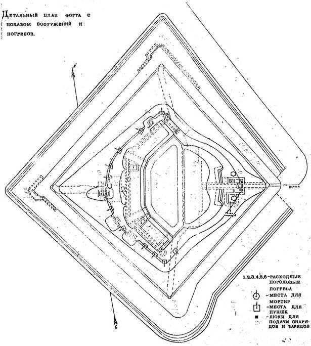 Детальний план форта Розмір зображення: 615:684 піксел Фото з альбому «Дубенський форт-застава» Вкладені елементи Детальний план форта (варіант) План казематів. Нижній поверх План казематів. Верхній поверх Профіль по середньому фасу Переріз