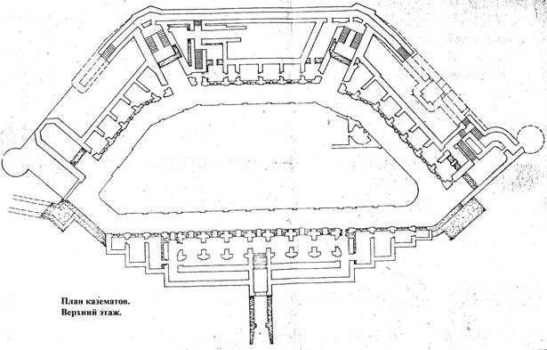План казематів. Верхній поверх Розмір зображення: 615:393 піксел Фото з альбому «Дубенський форт-застава» Попередня сторінка | Вище | Наступна сторінка