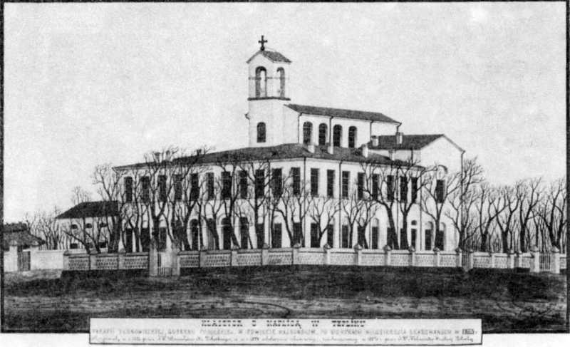 Теплик. Каплиця і монастир сестер милосердя (закриті у 1865 р.) після реставрації у 1885-1886 рр. Мал. з натури Зенона Журовського (Zenon Żurowski), 1889 р.