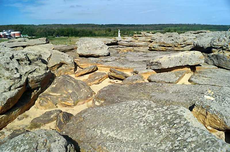 В Мелітопольському районі Запорізької області, біля села Мирне, стоїть 12 метровий кам’яний пагорб, який сміливо можна відносити до головних пам’яток України. Пам’яток, як природних, так і антропогенних. Це Кам’яна Могила. Пагорб має площу 1,6 га і складається з окремих кам’яних (пісковикових) блоків (їх близько 3 тисяч). Між блоками є достатньо великі щілини та печери, які нині засипані піском, а колись були житлом та святилищем давньої людини. На стінах печер та гротів збереглися понад 1000 петрогліфів – наскельних малюнків, які створили люди – мешканці місцевих степів та кочівники, за кілька тисячоліть. Найстаріші малюнки датуються 24 тисячоліттям до нашої ери, наймолодші – 11-13 століттями нашої ери. [З ФБ групи «Ukraina Incognita» (опубліковано 18.04.2019 р.)] [+ фото]