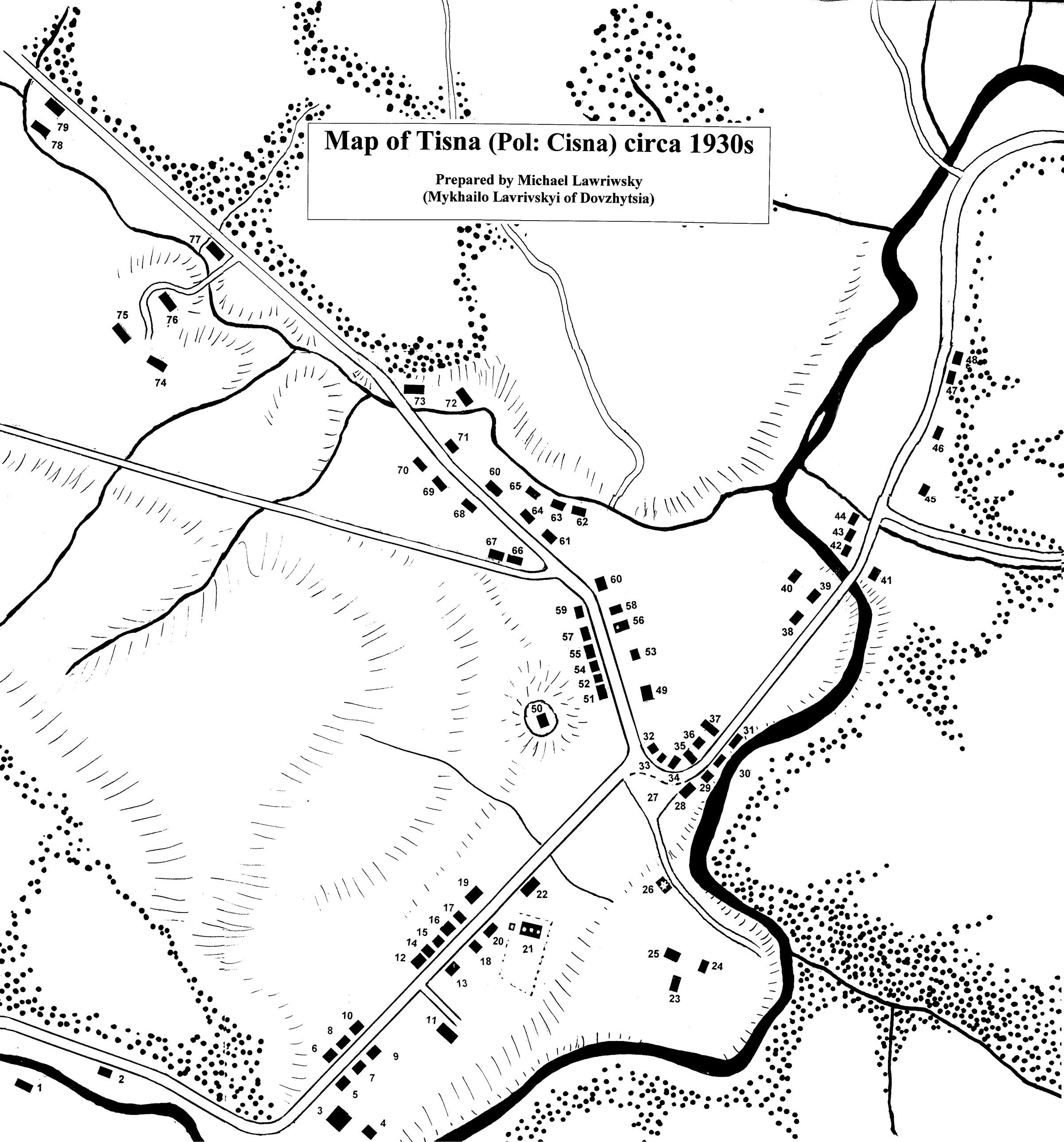 Кадастрова карта Тісної станом на кінець 1930-х – середину 1940-х рр.