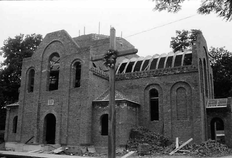 ЦеркваРозмір зображення: 800:545 піксел Церква нова будується: орієнтація вівтаря 120° в центрі міста на головної вулиці С4. Спостереження М.І.Жарких, 15 серпня 1991 р. |