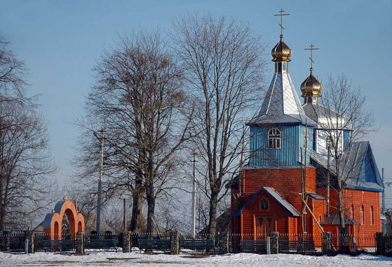 Церква св. ТрійціРозмір зображення: 800:545 піксел Фото Юрія Кепи з сайту , опубліковане 22 вересня 2013 р. Дерев’яна церква св. Трійці 1941 (?) р. Довідка на сайті |