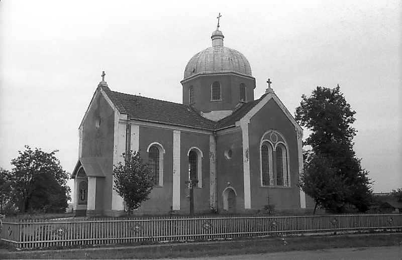Томашівці. Церква: орієнтація вівтаря 75° в центрі села на головній вулиці – С2, головний вхід – С3, дерев’яна дзвіниця – А4. Спостереження М.І.Жарких, 16 липня 1993 р.