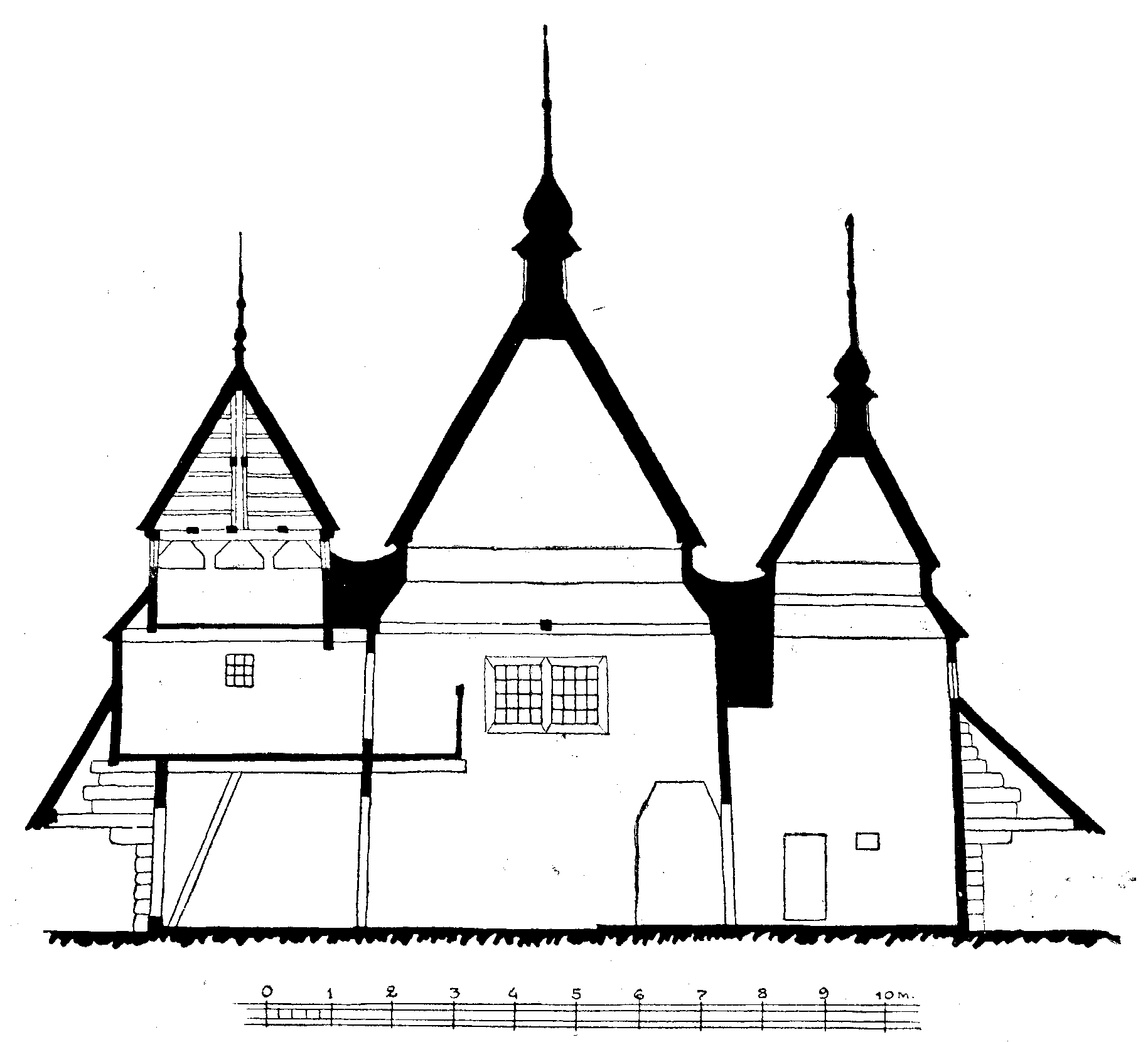 Повздовжний перекрій церкви св. Параскевії в с. Топільниця