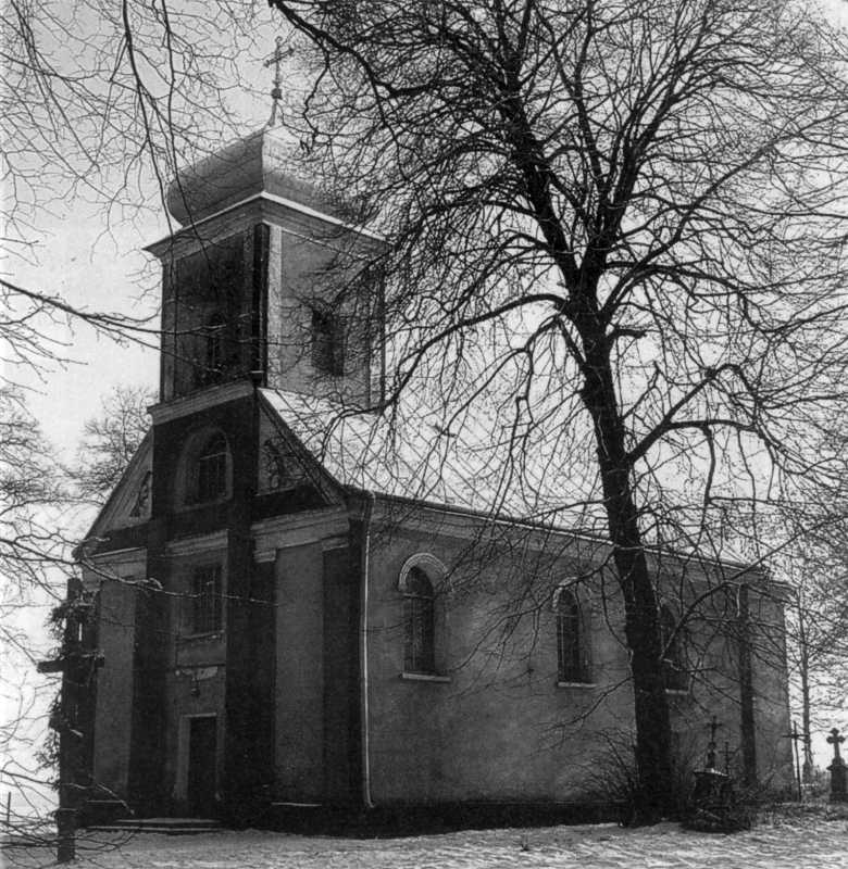 Найдавніші згадки про церкву відносяться до 1589 р. Ерекційну грамоту парафія отримала від дідички Софії Домбської у 1690 р. Існуюча церква споруджена у 1842 – 1846 pp. на місці давнішої дерев’яної. Це мурована однонавова споруда терезіанського типу, з одноярусною вежею, вкритою чотирибічною банею на чільному фасаді. З 1949 по 1989 р. стояла зачиненою.