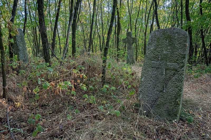 Фото Юрія Шепети, 22 серпня 2020 р. На задньому плані – чотирикінцевий хрест (2), рідкість на цьому цвинтарі.