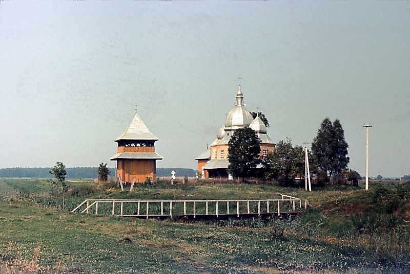 1990 р. Дзвіниця і церква. Вигляд з південного сходу