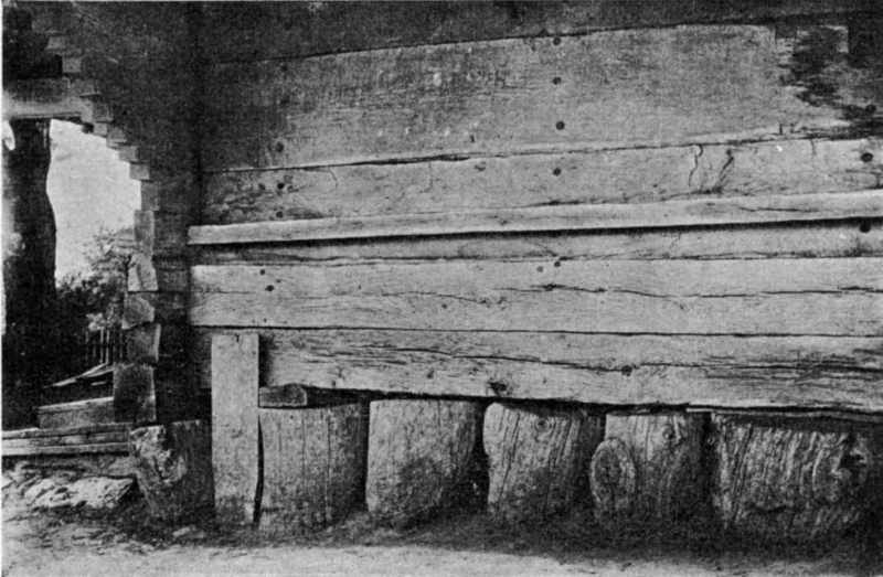 [1937 р.] Фундаментні стоякиРозмір зображення: 800:523 піксел Церква 1680 р. Джерело: Драган М. Українські деревляні церкви. – Льв.: 1937 р., т. 2, с. 5. |