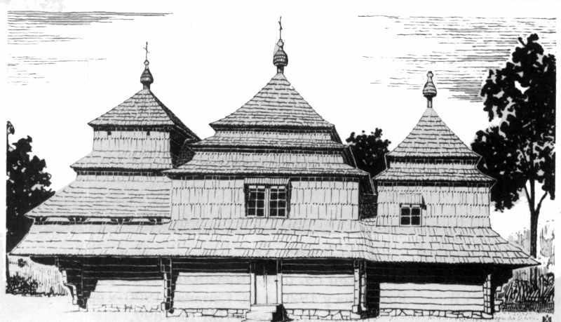 Турка Долішня. Церква св. Миколи, 1776 р. Рисунок М. Драгана 1920-х pp. зі збірки Національного Музею у Львові № 810.