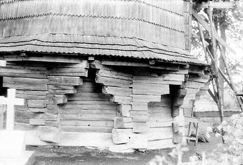 1990 р. Фрагмент зрубу вівтаряРозмір зображення: 800:542 піксел 1990 р. 11 червня. Фото М.І.Жарких. Негатека, № 626-37. |
