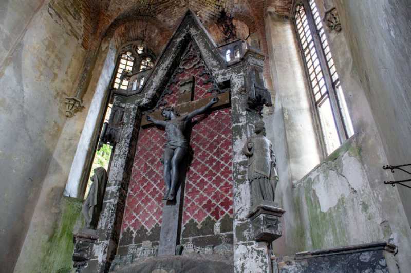 2018 р. Вівтар з розп’яттямРозмір зображення: 800:533 піксел Зі статті: Дмитрий Полюхович Украинцы против исторического наследия. Как уничтожают дворцы и замки (24.06.2018 г.) |