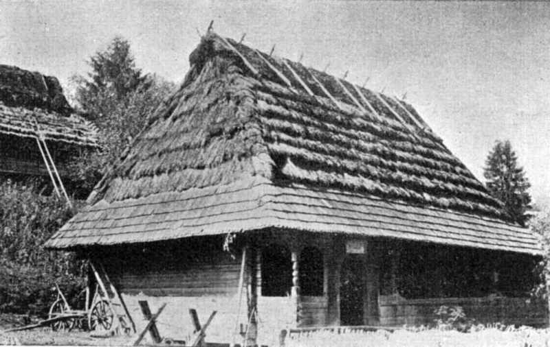 [1937 р.] Бойківська хатаРозмір зображення: 800:506 піксел Джерело: Драган М. Українські деревляні церкви. – Льв..: 1937 р., т. 2, с. 32. |