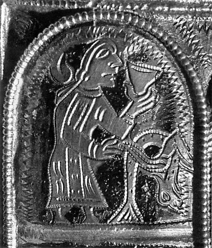 Жінка з чашеюРозмір зображення: 684:800 піксел Джерело: Рыбаков Б.А. Русское прикладное искусство 10 – 13 вв. – Лг.: 1971 г., с. 103. |