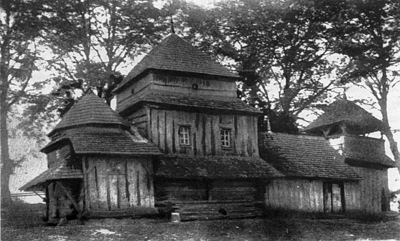 Твіржа. Церква Благовіщення Пр. Богородиці, XVII ст. Розібрана на поч. XX ст. Світлина 1900-х pp. зі збірки Центральний державний історичний архів України у Львові ф. 55, оп. 1, сп. 198, а. 14.