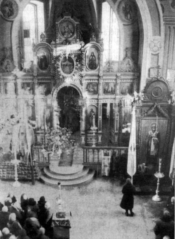 Інтер’єр. Фото зі збірки Віктора Робочека, 1940-і рр.Розмір зображення: 588:800 піксел Джерело: Слободян В. Церкви Холмської єпархії. – Львів: Наукове товариство ім. Шевченка, 2005 р., с. 410. |