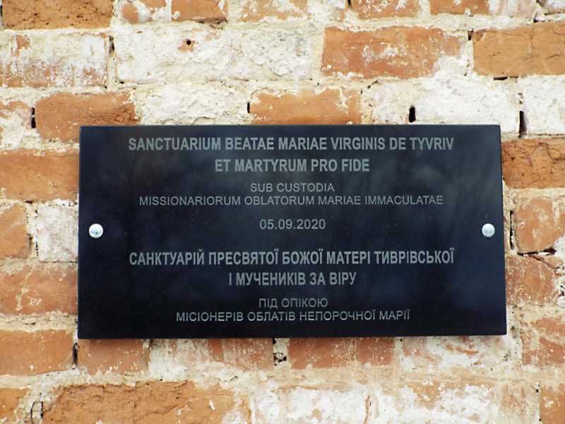 Напис (латинською та українською мовами): «Санктуарці пресвятої божої матері Тиврівської і мучеників за віру під опікою місіонерів облатів непорочної Марії. 5.09.2020».
