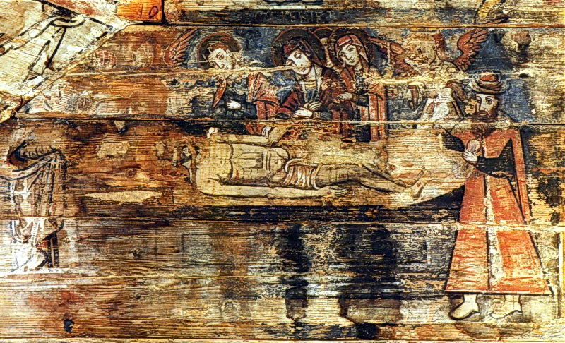 Стефан Дзенгалович. Покладення до гробу. Розпис північної стіни нави (фрагмент циклу страстей Христових). Біля 1682 р.