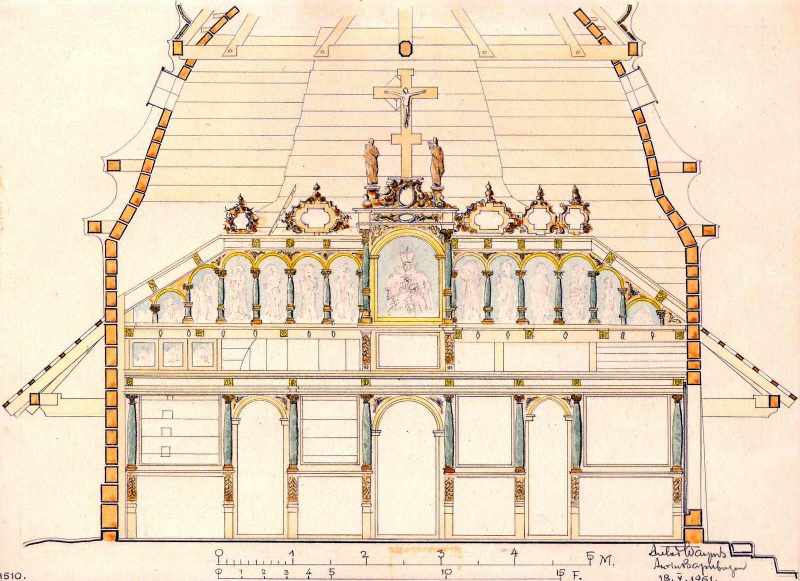 1510 Church, Ulyuch (Uljucz), Sanok, Poland. Cross section “5-6” showing the iconostasis.