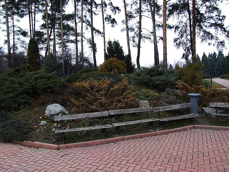 2015 р. Альпійська гіркаРозмір зображення: 800:600 піксел Альпійська гірка перед головним фасадом готелю. Фото М. І. Жарких, 19 березня 2015 р. |