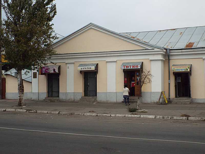 Фрагмент головного фасаду (2)Розмір зображення: 800:600 піксел Торгові ряди 1838 р. (вул. Небесної Сотні – кол. Радянська, 47) Фото Івана Парнікози, 4 жовтня 2017 р. |