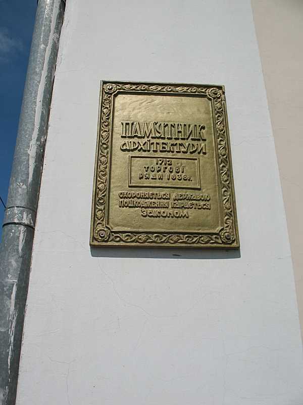Охоронна дошкаРозмір зображення: 600:800 піксел Торгові ряди 1838 р. (вул. Небесної Сотні – кол. Радянська, 47). Фото Івана Парнікози, 14 червня 2011 р. |