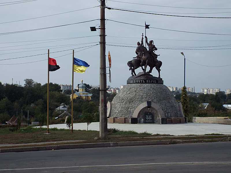 Пам’ятник Максиму Залізняку та Івану ГонтіРозмір зображення: 800:600 піксел Пам’ятник Максиму Залізняку та Івану Гонті. Фото Івана Парнікози, 4 жовтня 2017 р. |