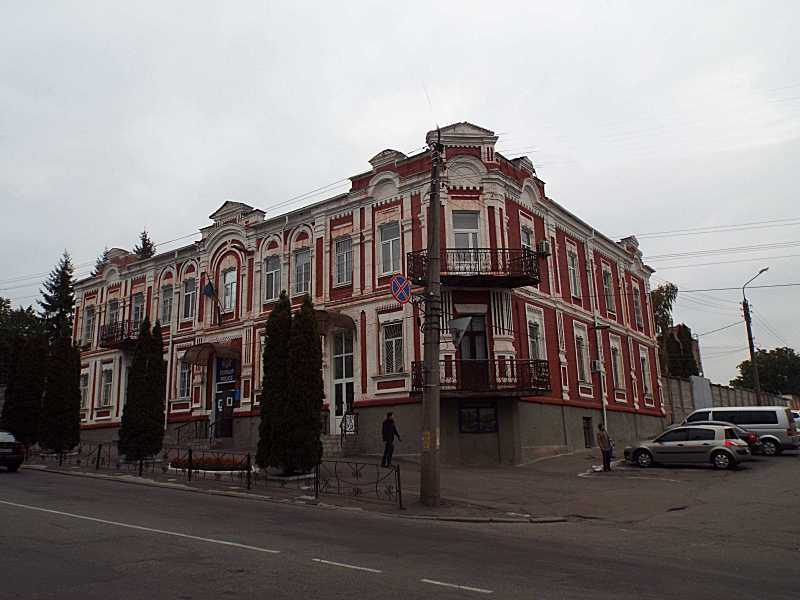 Колишне Уманське повітове земство, вул. Незалежності, 35, архітектор В. Файнштейн. Фото Івана Парнікози, 4 жовтня 2017 р. (ліворуч – вул. Незалежності, праворуч – вул. Шухевича (за совітів – Свердлова)).