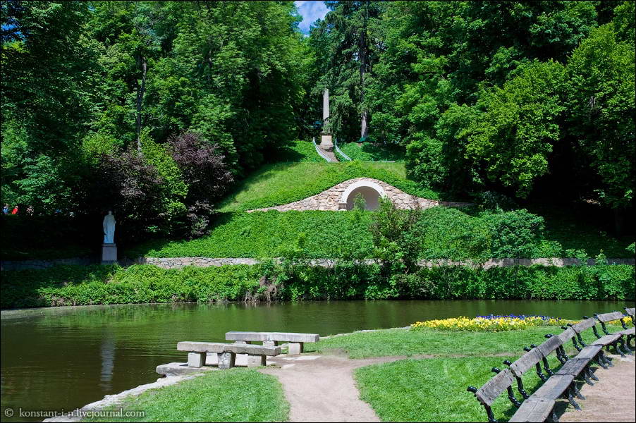 Ліворуч – скульптура Еврипіда, над терасою – обеліск «Орел» [ну, польський герб, хто не знає…].