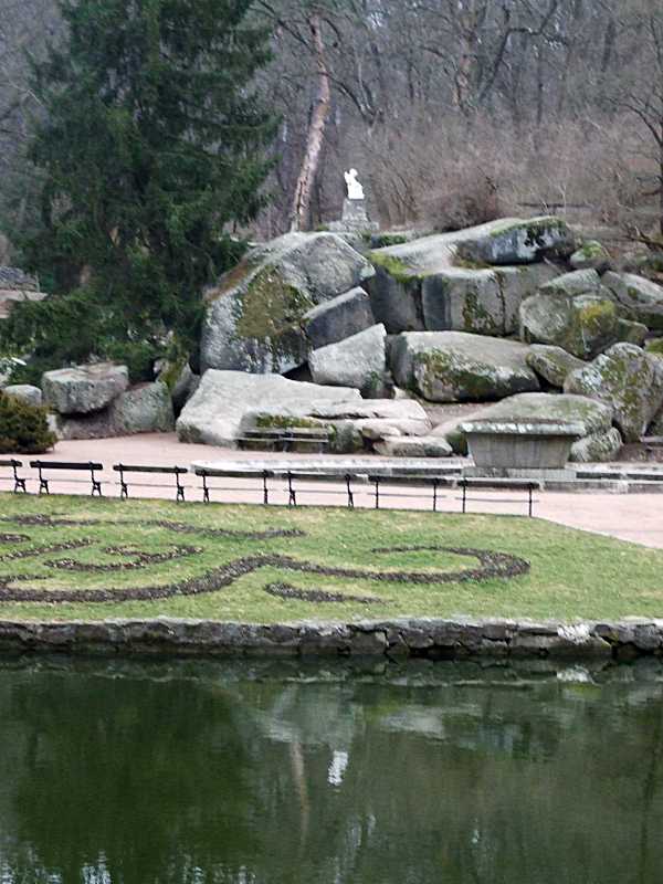 Західний гротРозмір зображення: 600:800 піксел Над гротом – скульптура Ерота. Фото М. І. Жарких, 19 березня 2015 р. |
