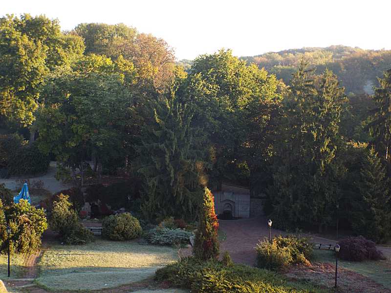 [2]Розмір зображення: 800:600 піксел Вид на район центрального входу до парку з Будинку творчості вчених. Фото Івана Парнікози, 3 жовтня 2017 р. |