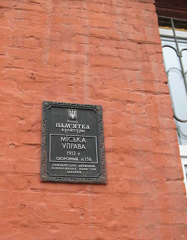 Охоронна дошкаРозмір зображення: 623:800 піксел Міська управа (педагогічний інститут), вул. Садова,2, 1912 р. Фото Івана Парнікози, 14 червня 2011 р. |