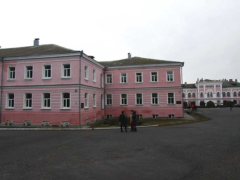 2015 р. Торцевий фасадРозмір зображення: 800:600 піксел Ліворуч – фрагмент корпусу [4а], в центрі – торцевий (західний) фасад корпусу [4б6, праворуч – корпус [4г]. Фото М. І. Жарких, 19 березня 2015 р. |