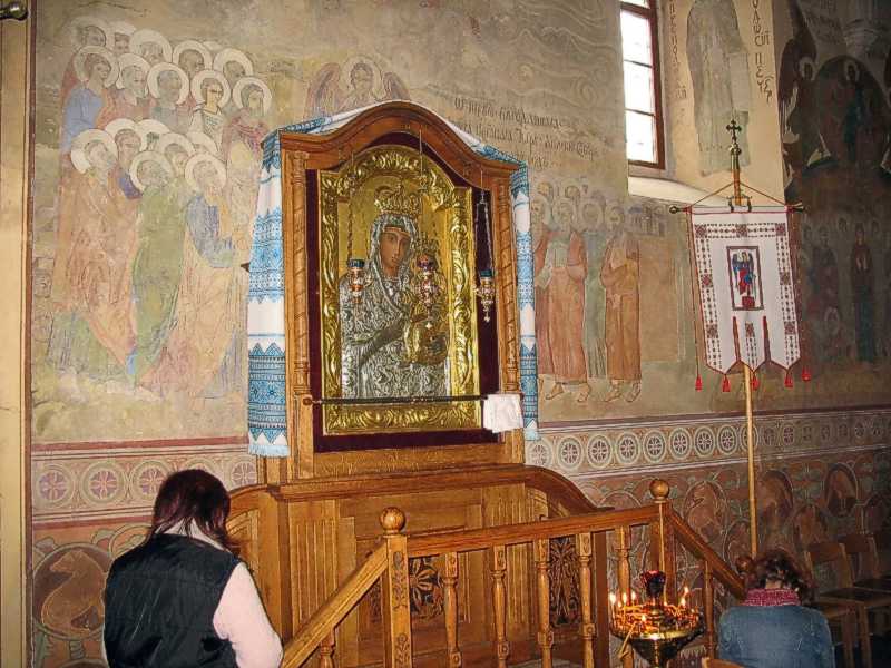 Кіот дуже незручучно притулено до стіни, і він закриває центральну частину стінописної композиції (здається, «Собор всіх святих», в центрі – св. Іоан Предтеча в образі ангела пустелі).