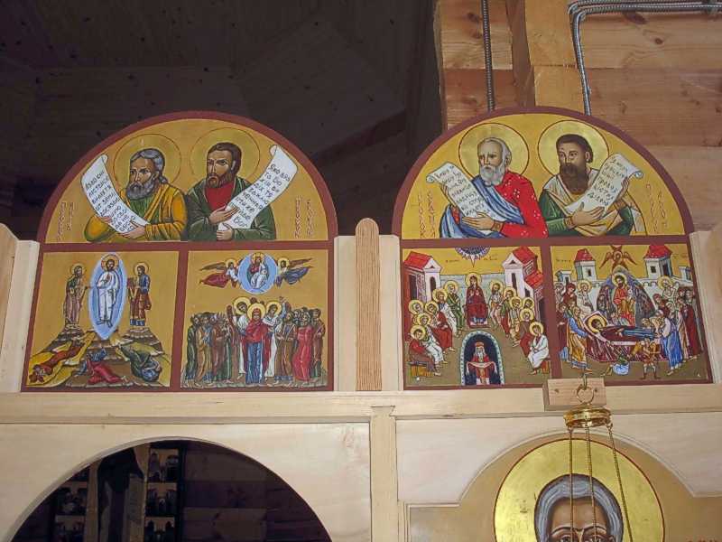 Пророчий і празниковий ряди (права частина – 2)Розмір зображення: 800:600 піксел Фото Зенона Боровця і Богдана Тхора, 29 травня 2010 р. Пророчий ряд: Яків, Єзекиїл, Єремія, Арон. Празниковий ряд: Преображення; Вознесіння; Зішестя св. духа; Успіння. |