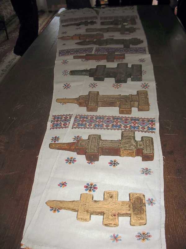 Дерев’яні 7-кінцеві різьблені хрести (2)Розмір зображення: 600:800 піксел Фото Зенона Боровця і Богдана Тхора, 20 квітня 2015 р. |