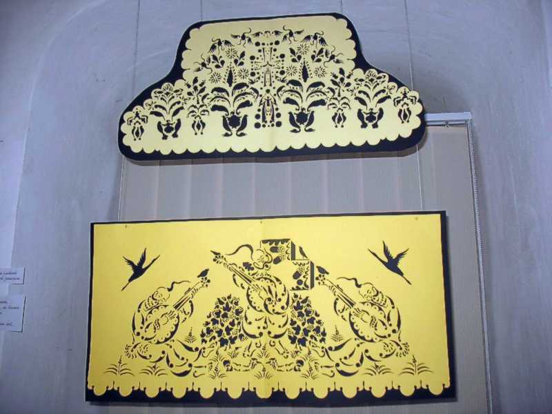 Витинанка «Бандуристи»Розмір зображення: 800:600 піксел Фото Зенона Боровця і Богдана Тхора, 29 квітня 2015 р. А над бандуристами – витинанка із розп’ятим Христом і богородицею Знамення. |
